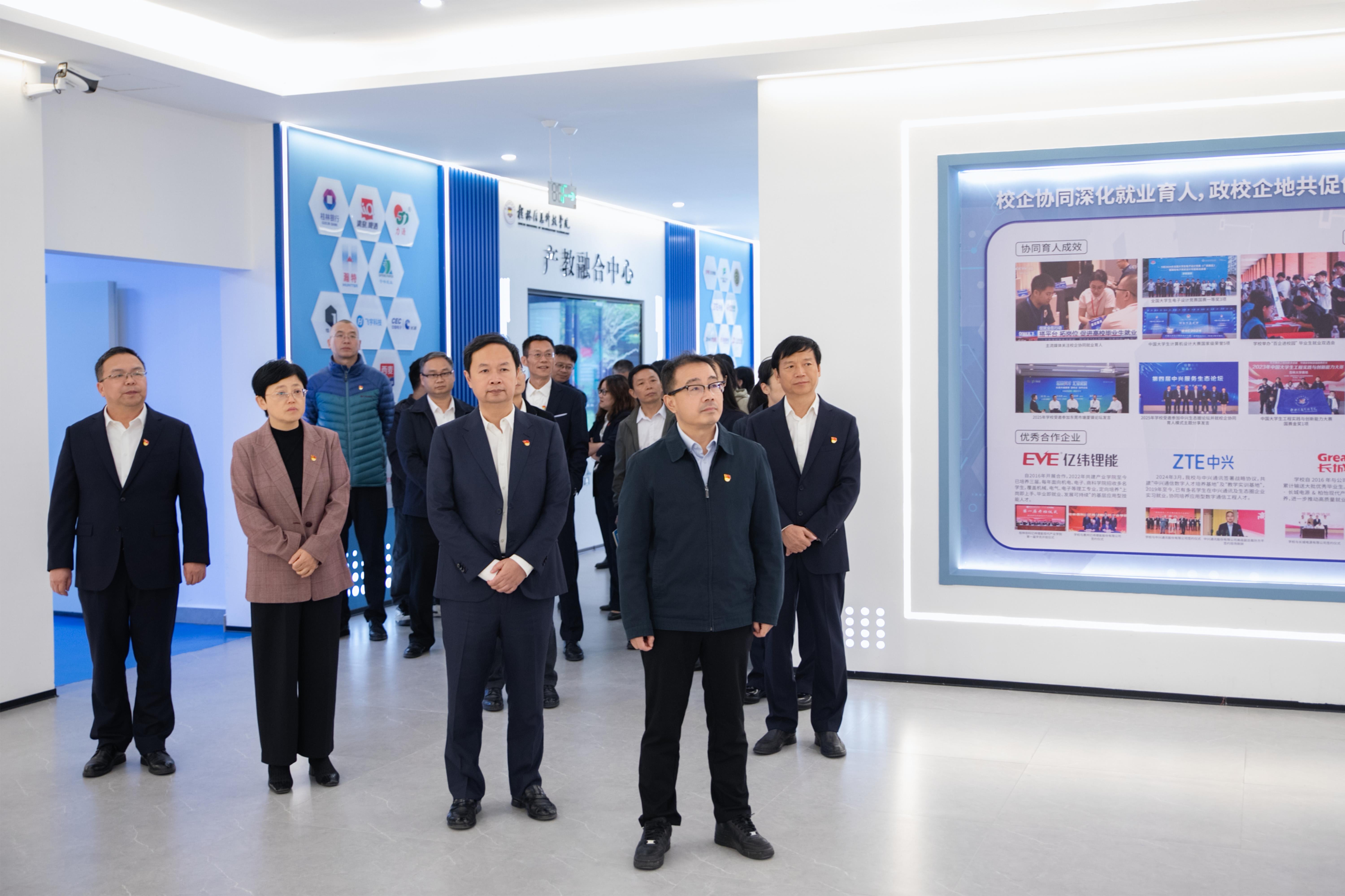 仪式前,色情av电子科技大学徐华蕊书记一行参观了我校科技馆、思政馆、创新实践中心、产教融合中心及校史馆。色情av党委组织部、党委宣传部、党委教师工作部、党委学生工作部、教务处、人事处、校团委、发展规划处、图书馆负责人以及各二级党组织书记参加会议。色情av电子科技大学相关单位负责同志参加本次活动。