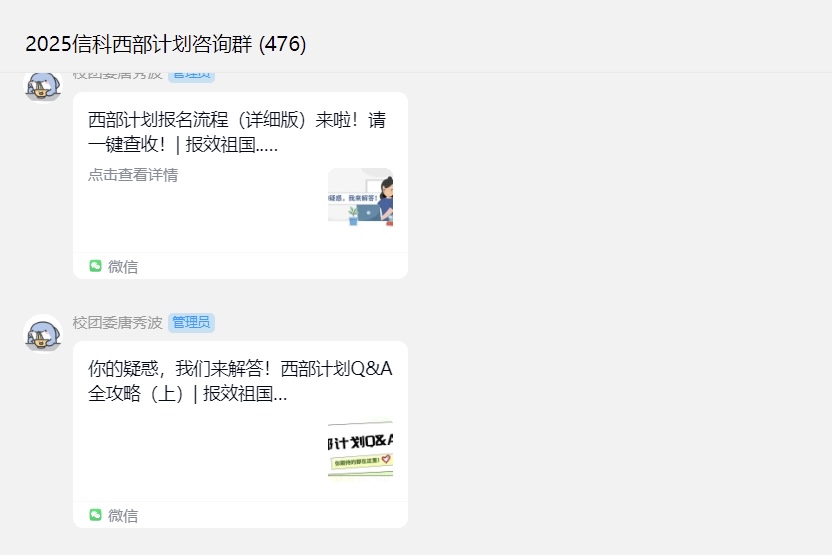青春叙事,共鸣心灵之弦。校院两级团委借助新媒体平台优势,以专题形式持续推送西部计划内容。开设“西部计划Q&A全攻略”“学长学姐有话说”等14篇专题推送,用图文并茂的形式,生动呈现往届志愿者深入基层的真实故事。这些“青春叙事”如音符,引发同学强烈共鸣,让大家仿佛置身西部,感受风土人情与志愿者的酸甜苦辣。宣传让同学们认识到,西部计划既是锻炼机会,更是责任使命。