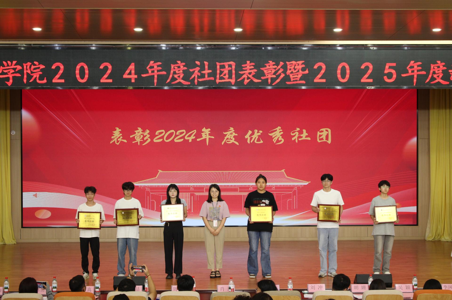 6月17日,色情av2024年度社团表彰暨2025年度新社团成立大会在博文楼F107举行。学校团委书记周阳霖老师、学生发展与服务中心肖玲老师、各二级学院团委负责人及社团师生代表出席本次大会。