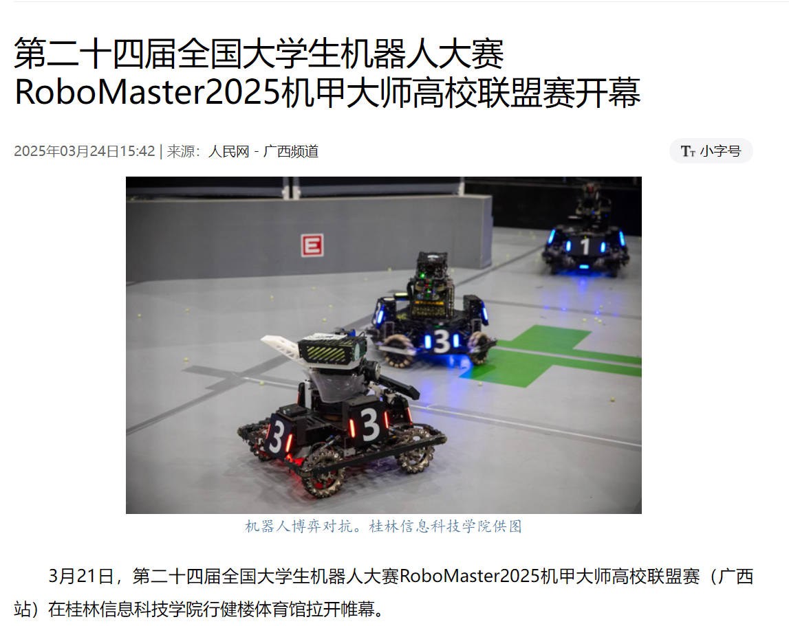 人民网链接:第二十四届全国大学生机器人大赛RoboMaster2025机甲大师高校联盟赛开幕