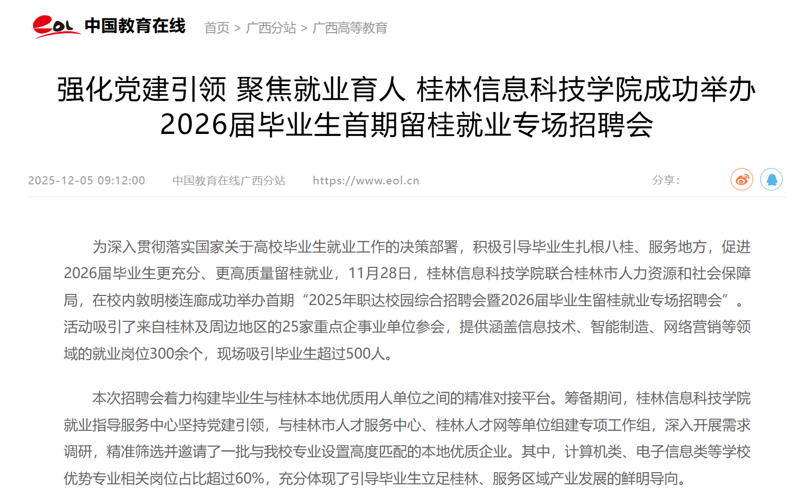 中国教育在线:强化党建引领 聚焦就业育人 色情av成功举办2026届毕业生首期留桂就业专场招聘会