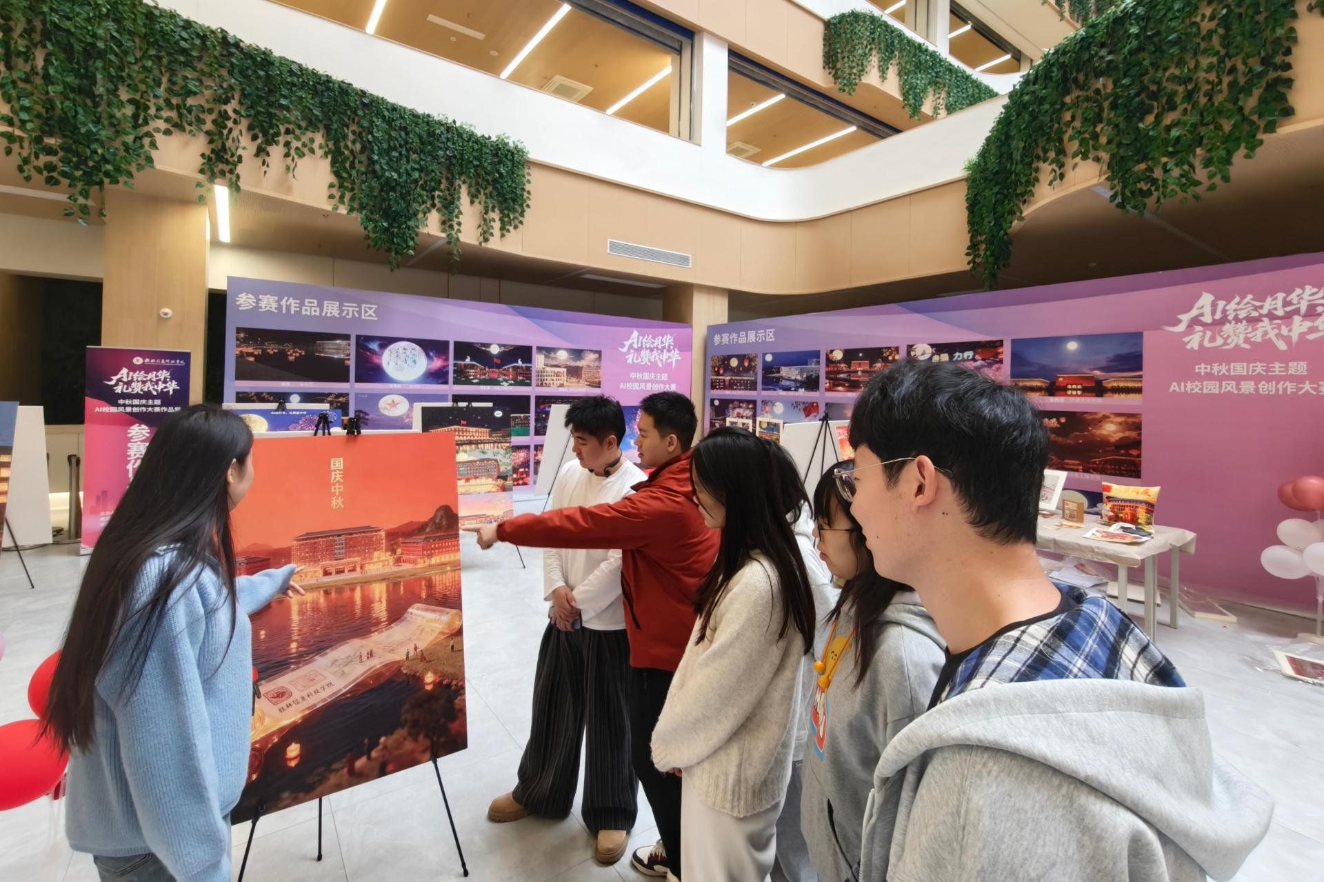 【美育育人】学校举办“AI绘月华,礼赞我中华”中秋国庆主题AI校园风景...为传承中华优秀传统文化,促进科技创新与校园文化深度融合,11月18日,由学校主办,创新创业学院、党委宣传部、创意设计学院联合承办的“AI绘月华,礼赞我中华”中秋国庆主题AI校园风景创作大赛作品展于图书馆1楼...